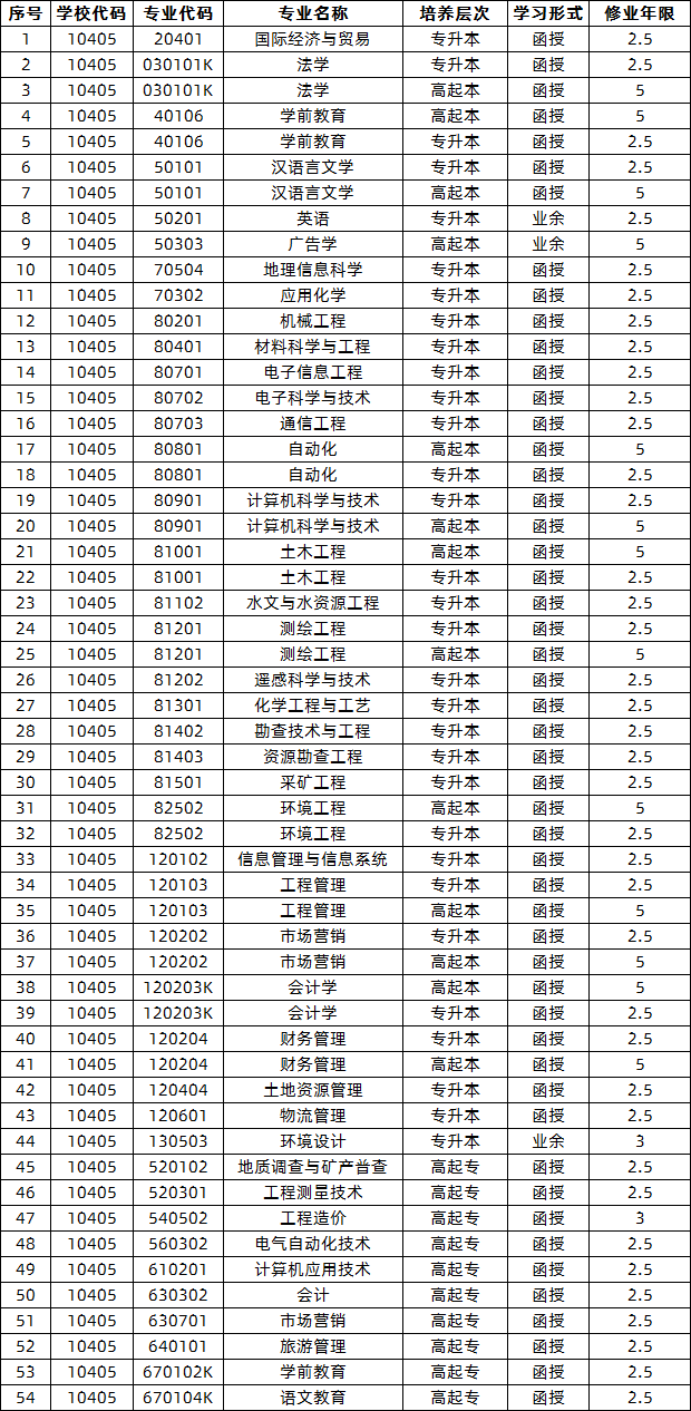 东华理工大学2020年高等学历继续教育拟招生专业情况汇总表