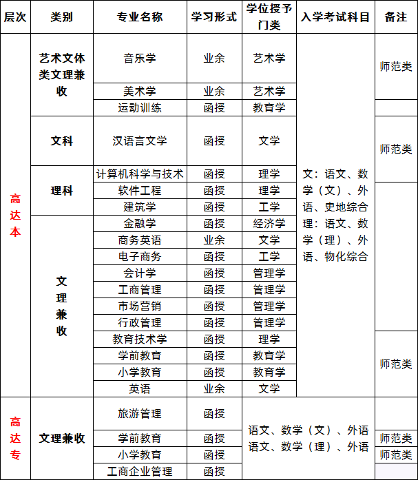 ★专业涵盖专升本、高达本、高达专等办学层次,囊括函授、业余等学习形式;
