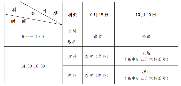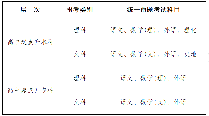 (二)录取批次。分高中起点升本科、专科起点升本科、高中起点升专科3个录取批次。